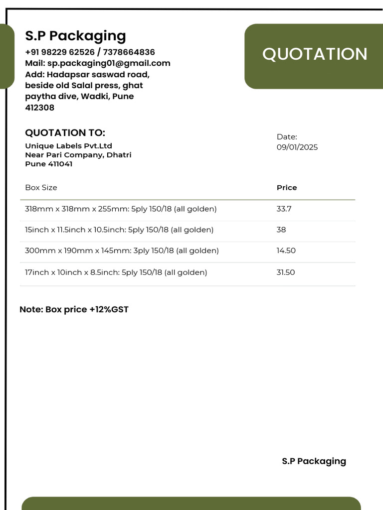 SP Invoice for Unique Labels Pvt. Ltd. | PDF