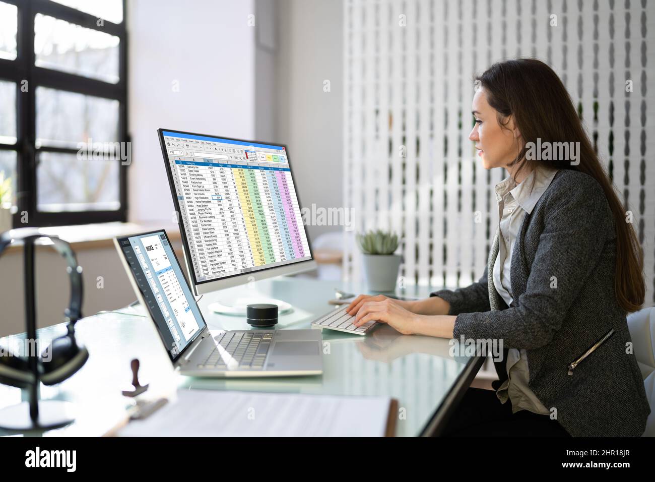 Using Corporate Invoice Spreadsheet On Computer Monitors Stock Photo ...