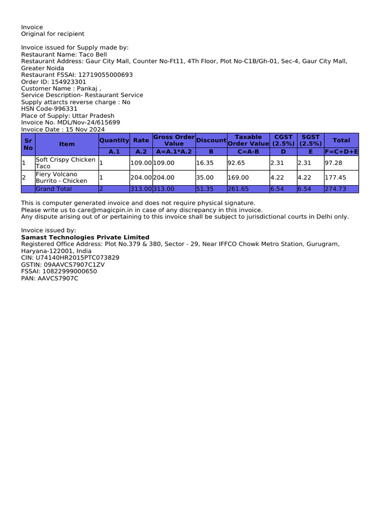 Magicpin Invoice-1 | PDF