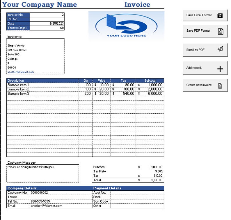 Excel - Customizable Invoice Maker, Archiver, Customer Record, and ...