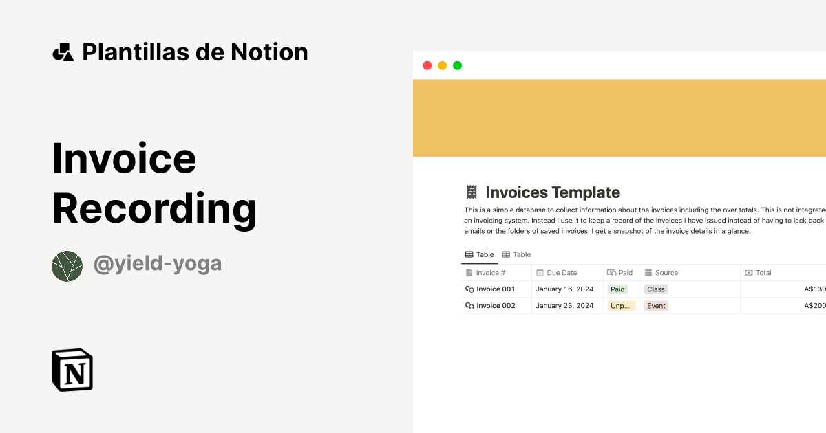 Plantilla Invoice Recording | Notion Marketplace