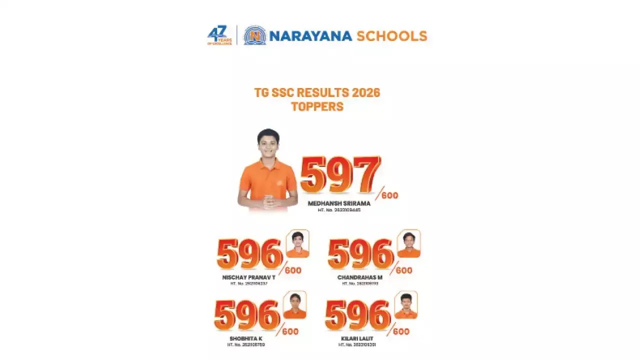 Narayana Schools excel in TG SSC 2026: Top score of 597, 99.66% pass rate