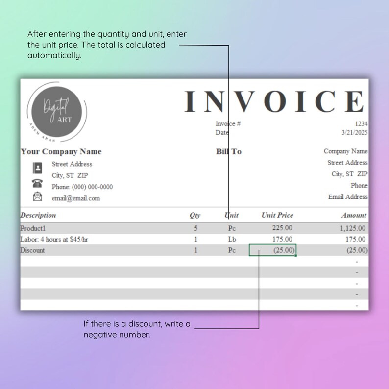Basic Invoice With Unit Price Excel Template