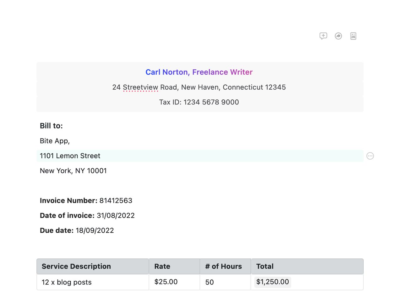 Invoice Template (hourly rate) | Free Template | Craft