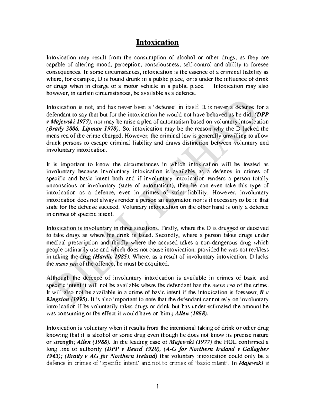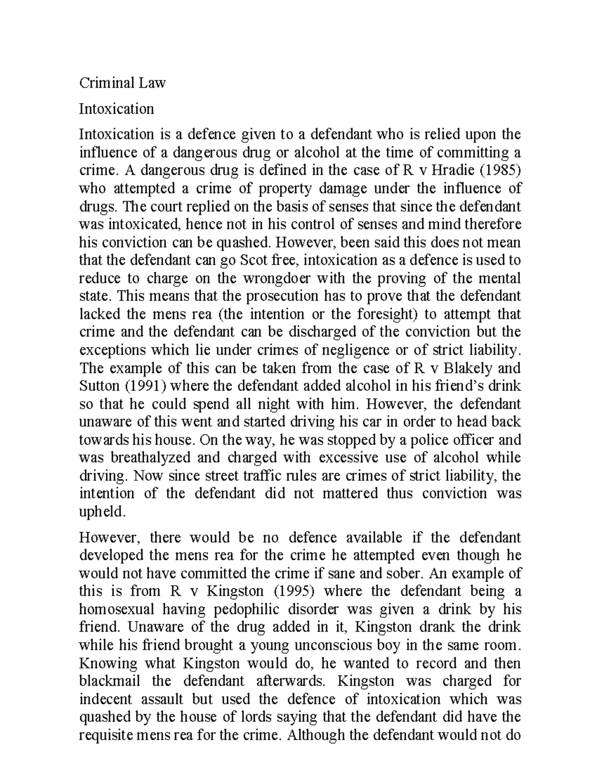 Intoxication essay - just an attempt on a topic of law - Criminal Law ...