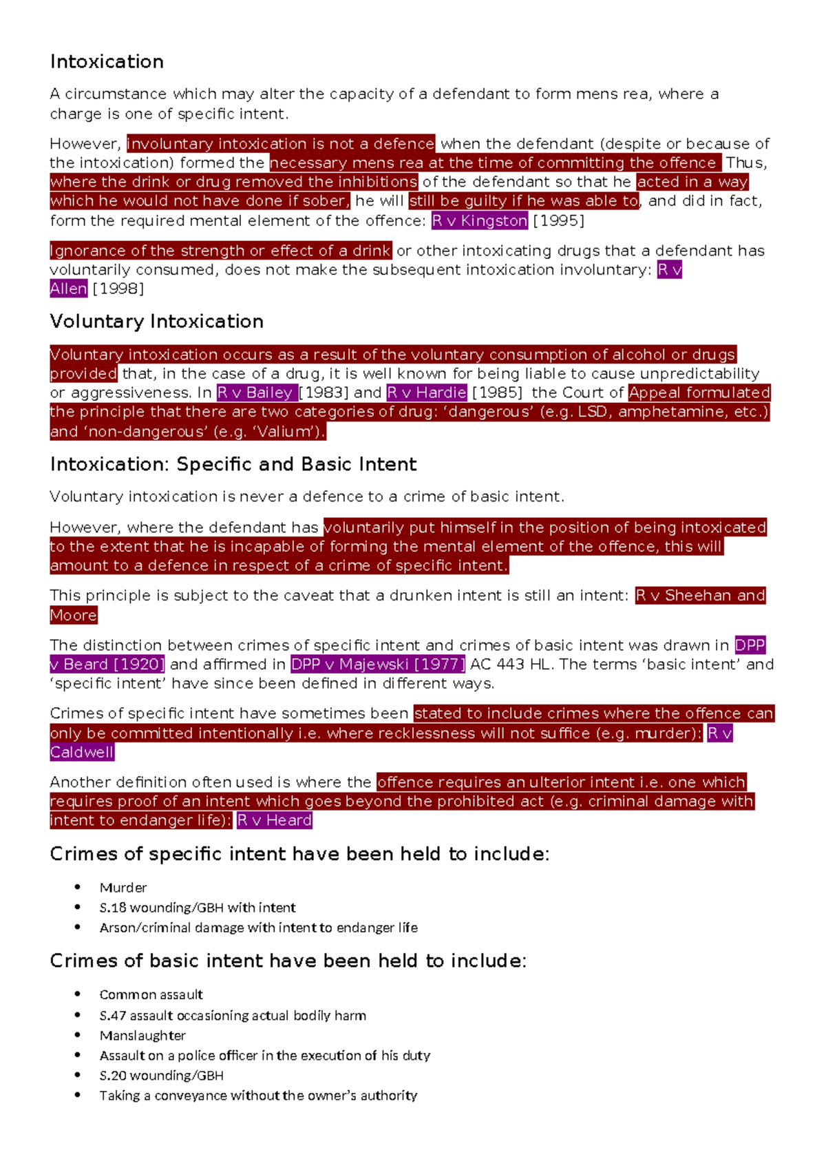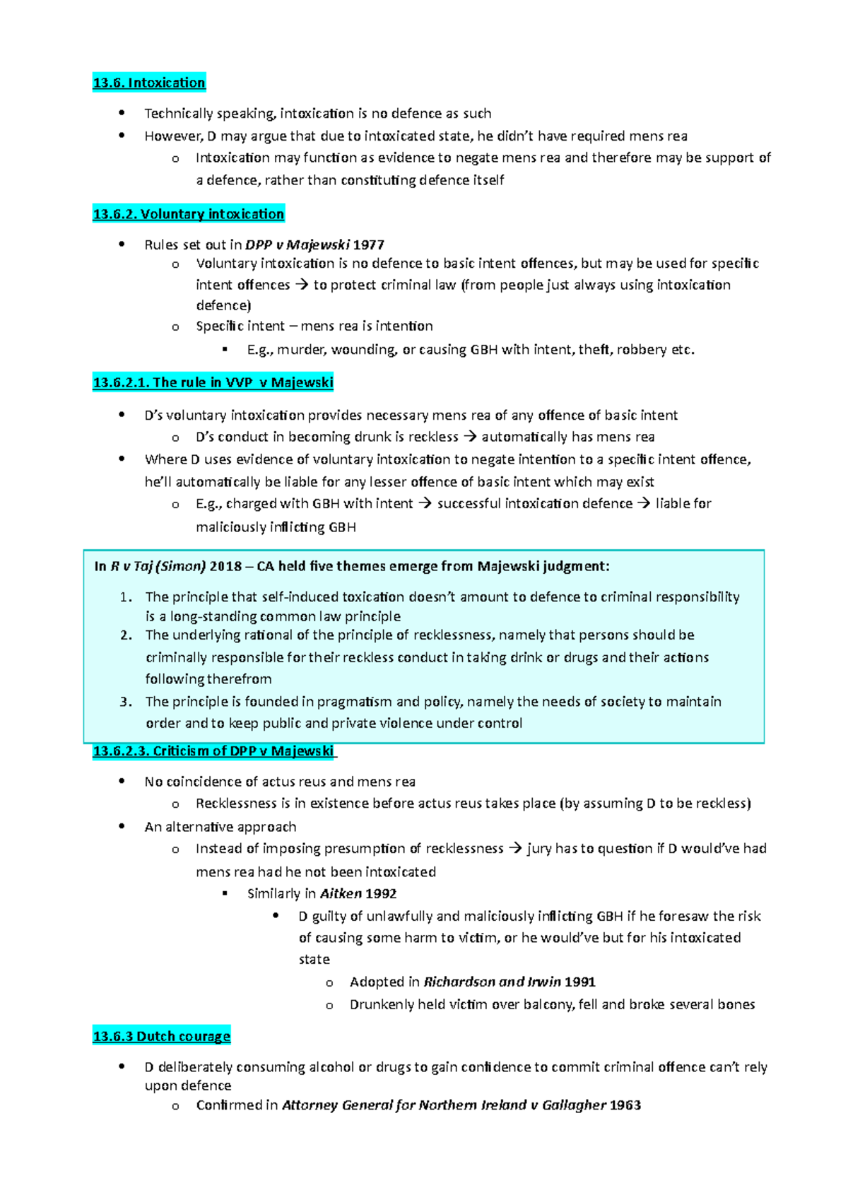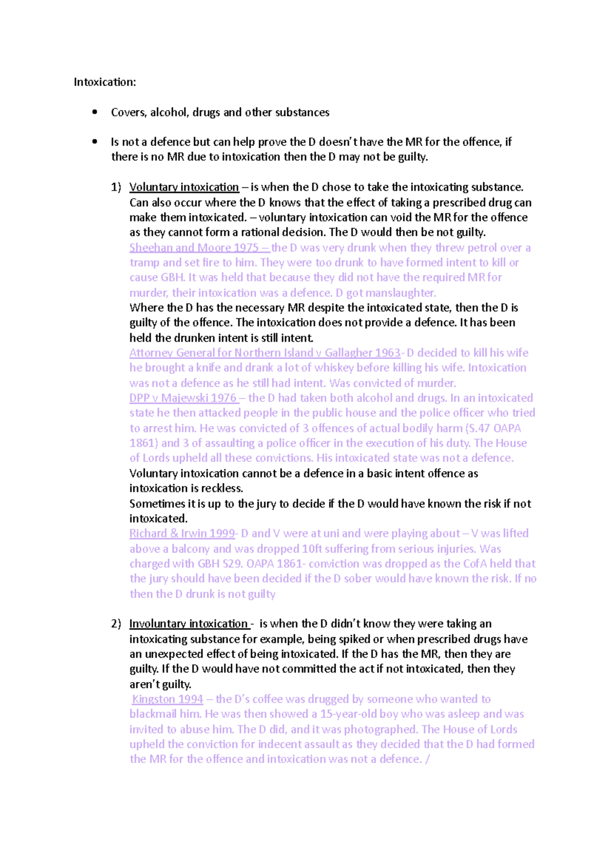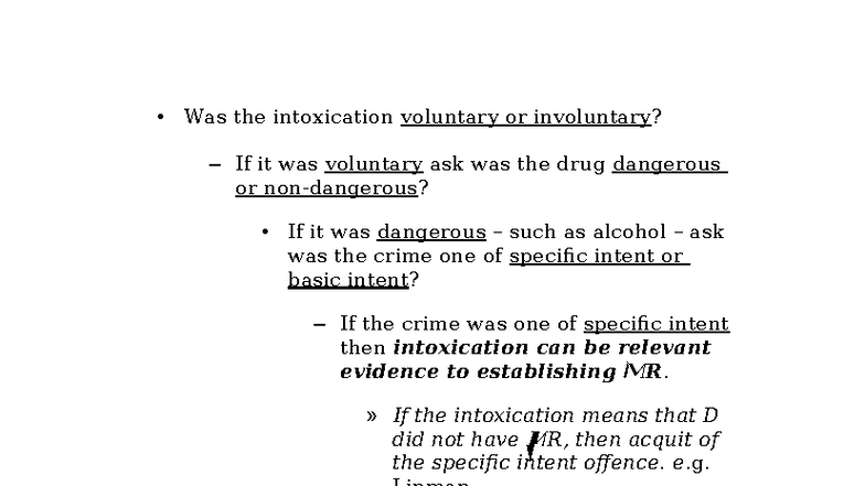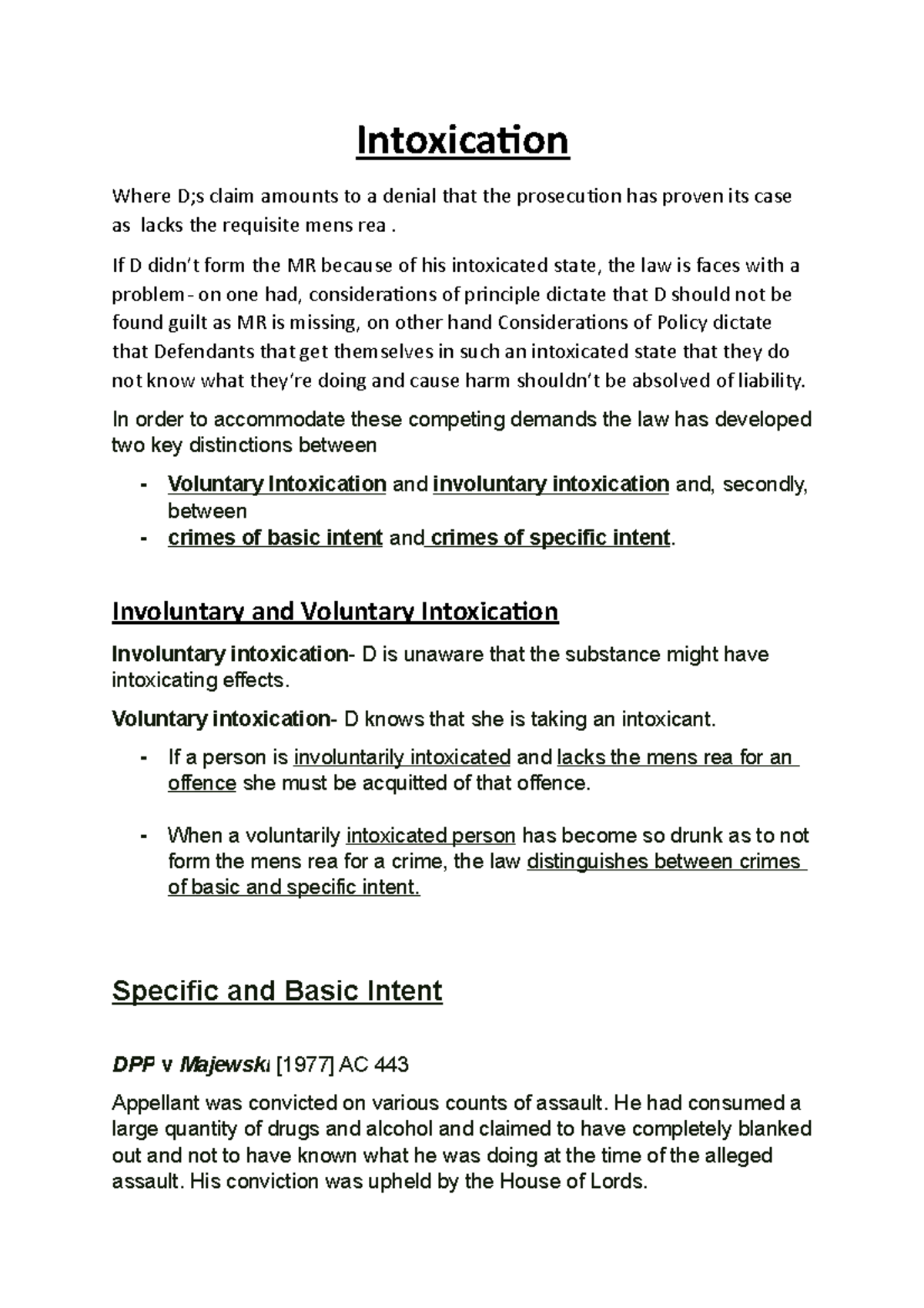 Intoxication - Voluntary intoxication – is when the D chose to take the ...