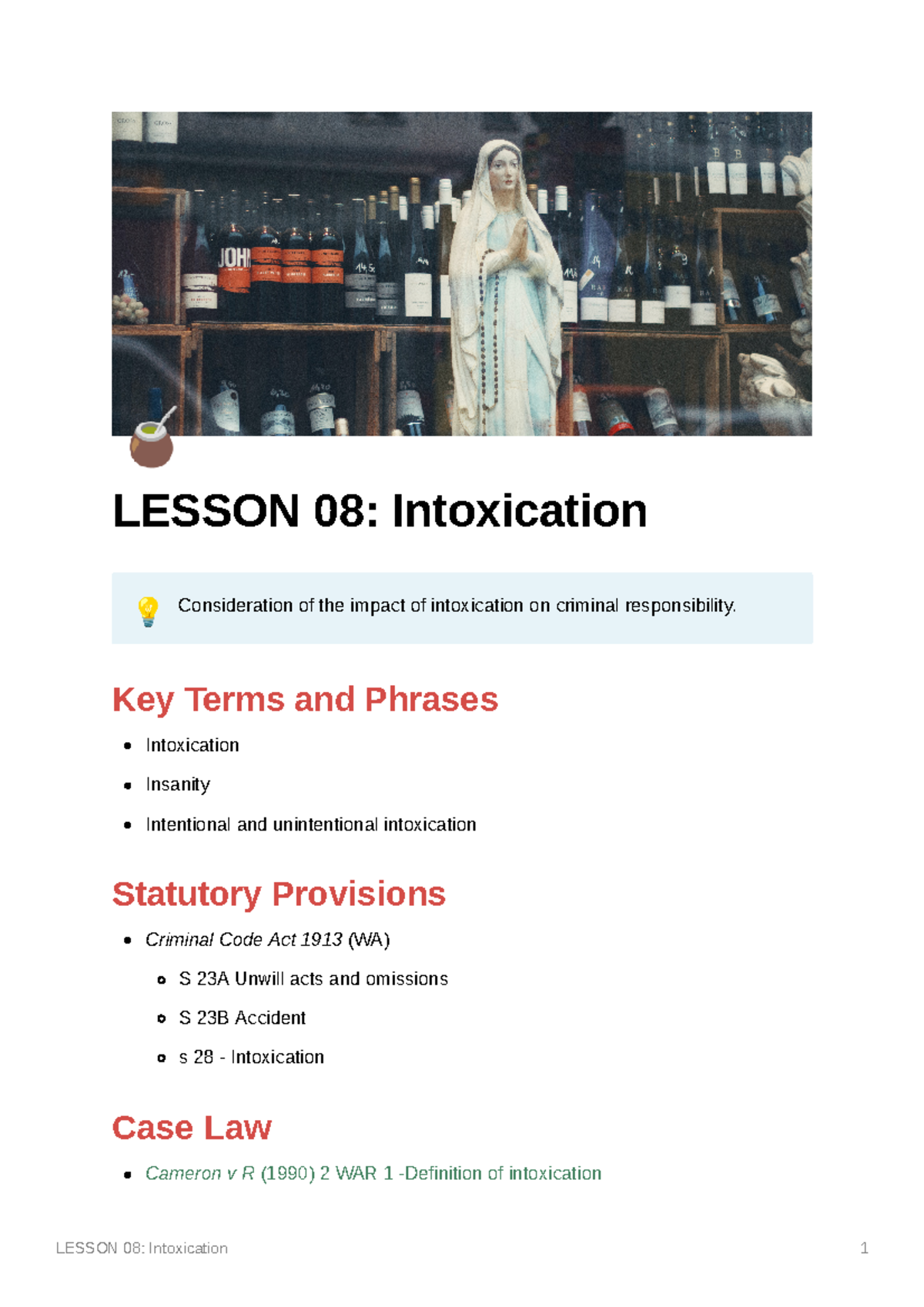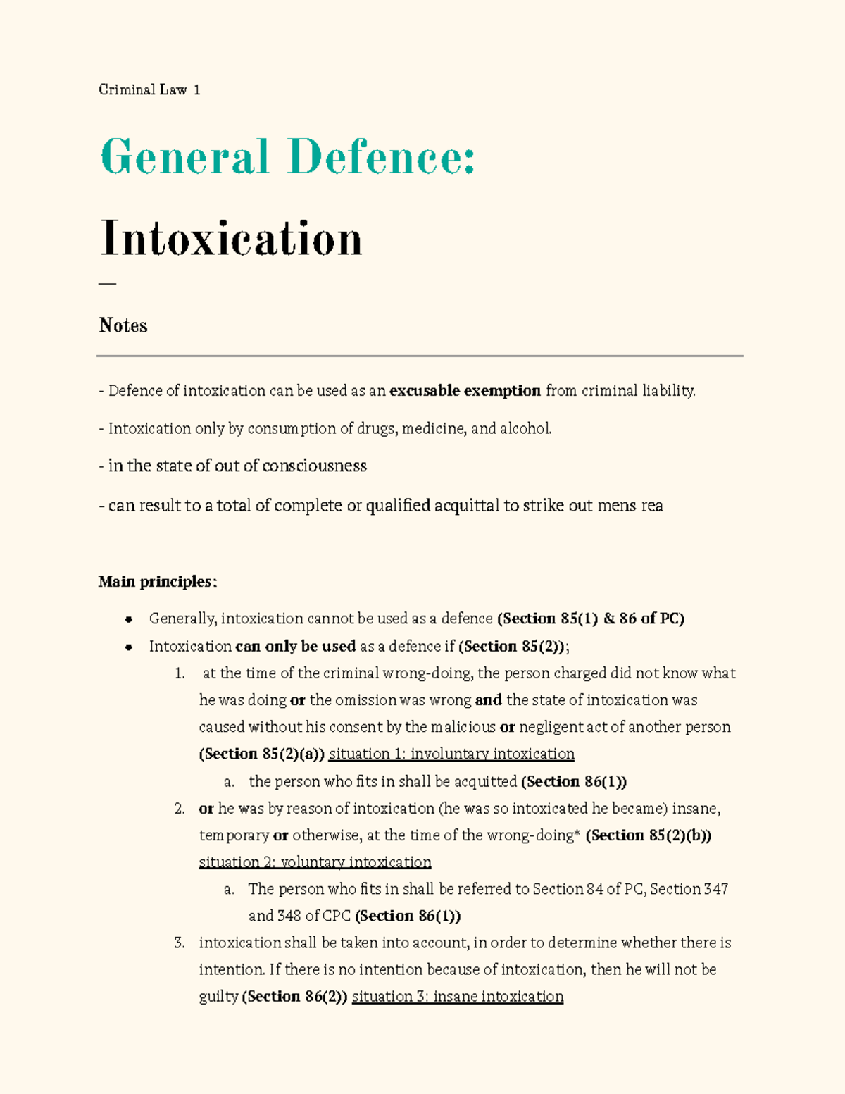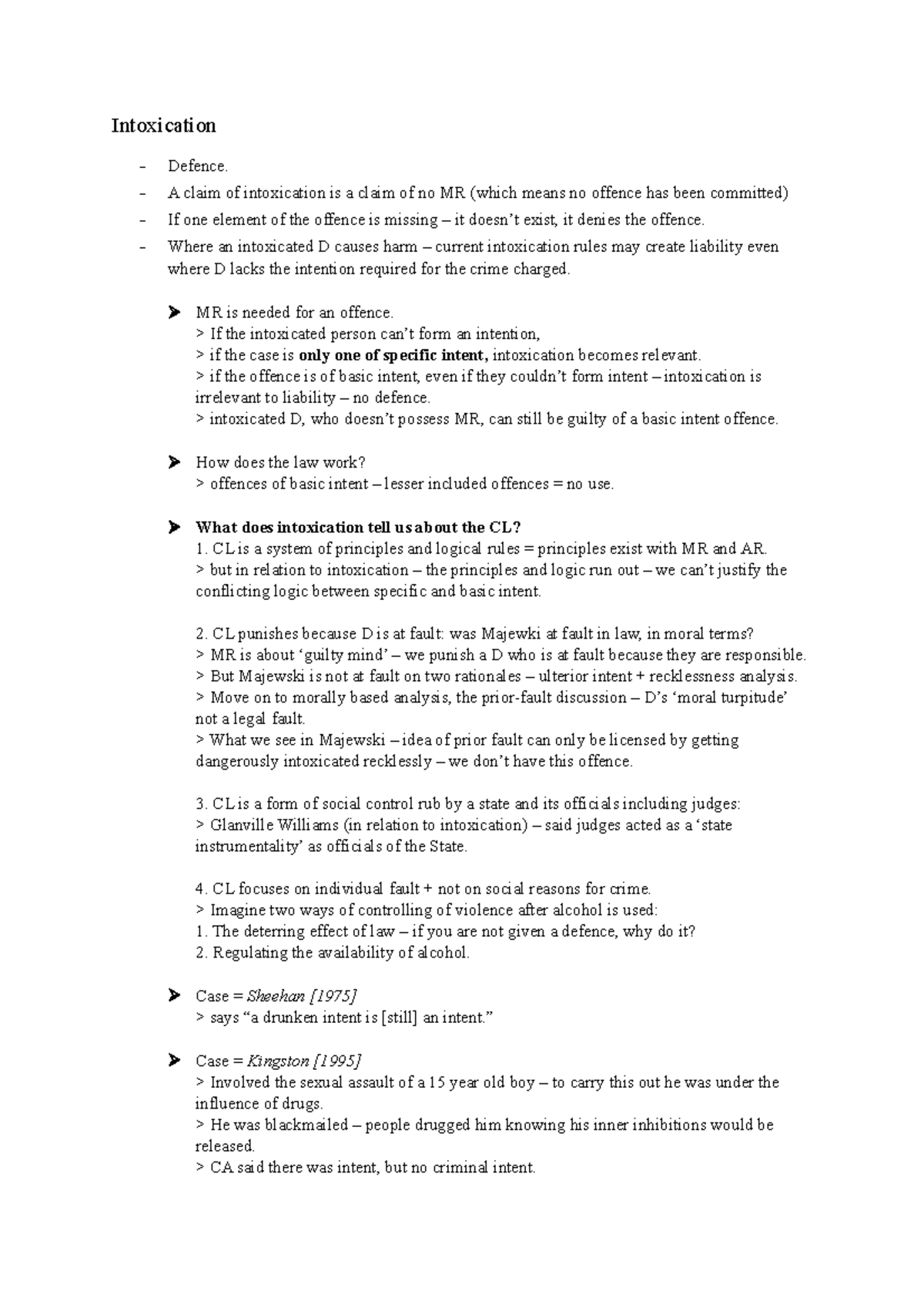 Intoxication Consideration of Criminal Responsibility - Studocu