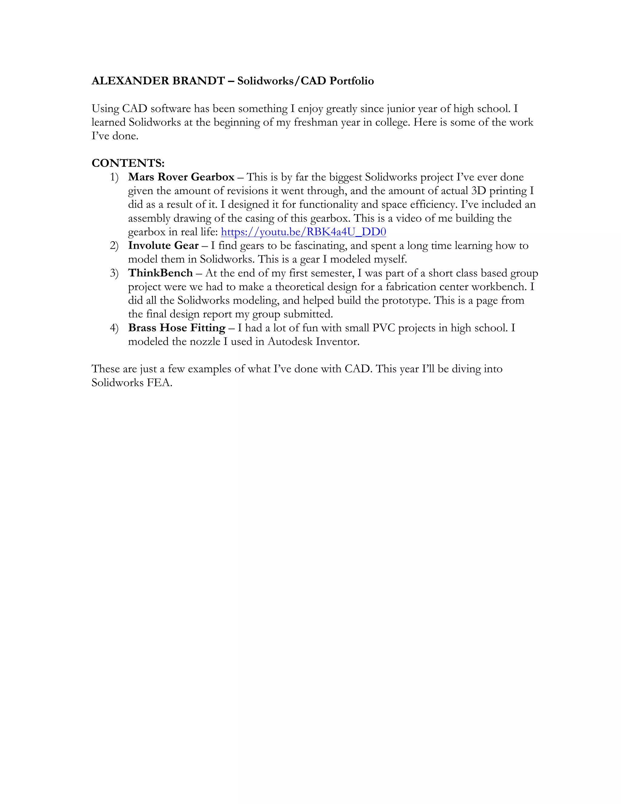 ALEXANDER BRANDT - Solidoworks Portfolio | PDF