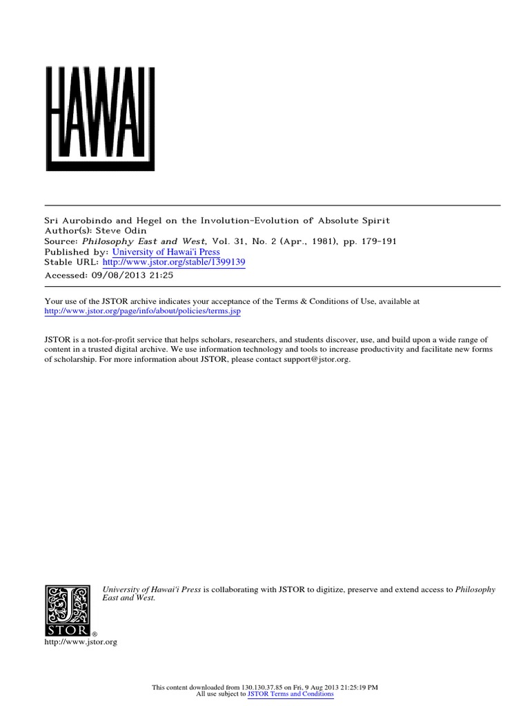 Sri Aurobindo and Hegel On The Involution-Evolution of Absolute Spirit ...