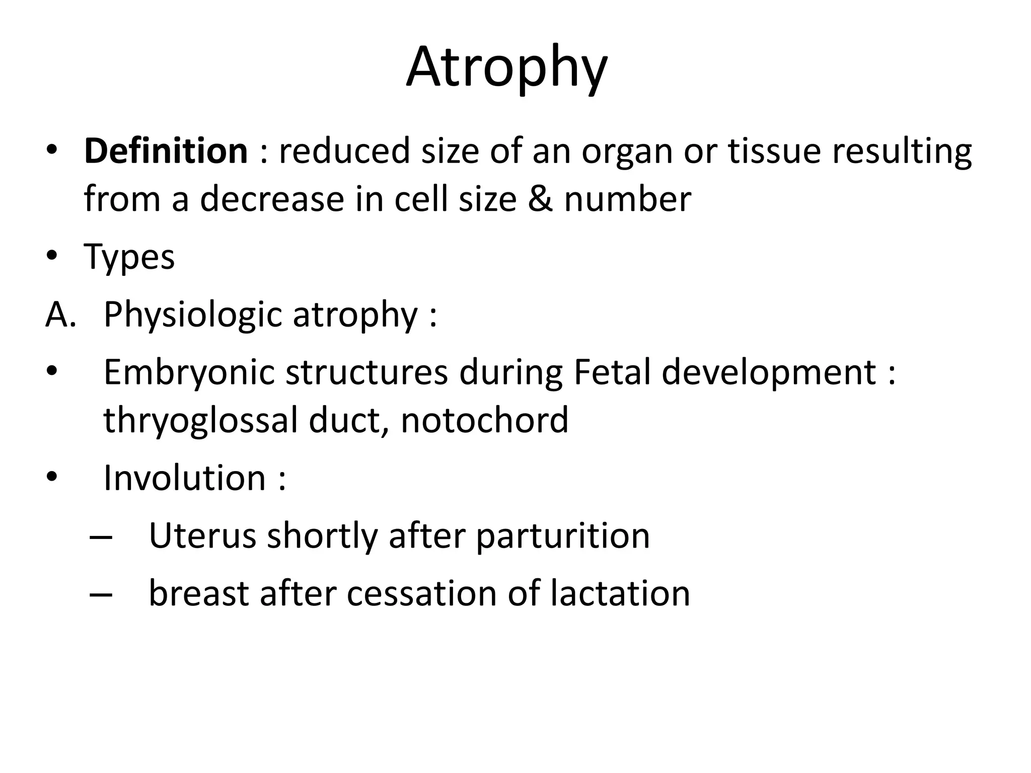 Cellular Adaptation & Response to Stress: Atrophy (ischemia, involution ...