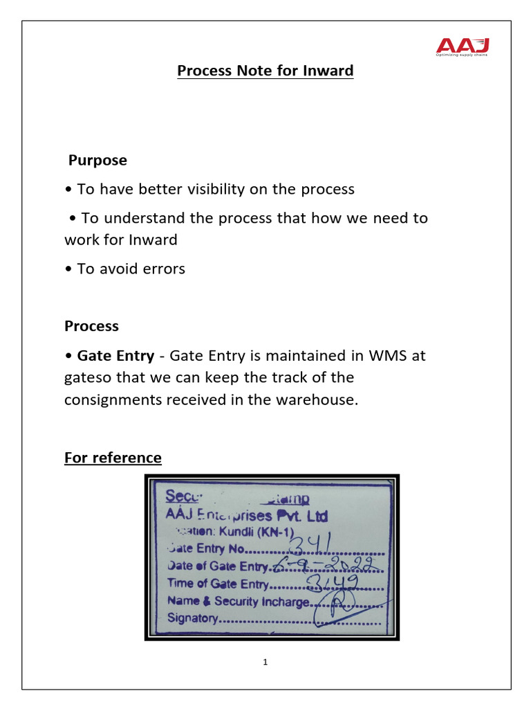 Inward Process Note of Inward 1 | PDF