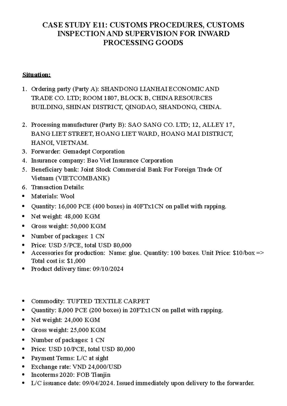 CASE STUDY E11: CUSTOMS PROCEDURES FOR INWARD PROCESSING GOODS - Studocu