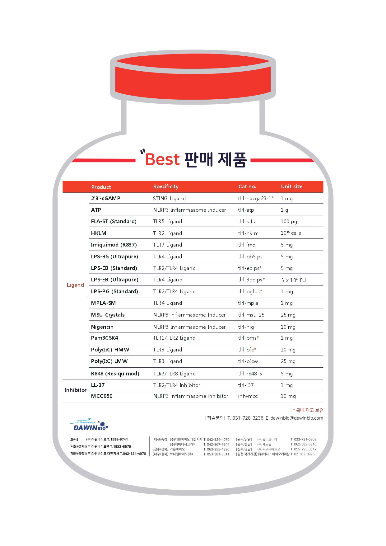 [InvivoGen] Ligand & Inhibitor 15%할인 [22.09.05~22.10.31] : 제품정보