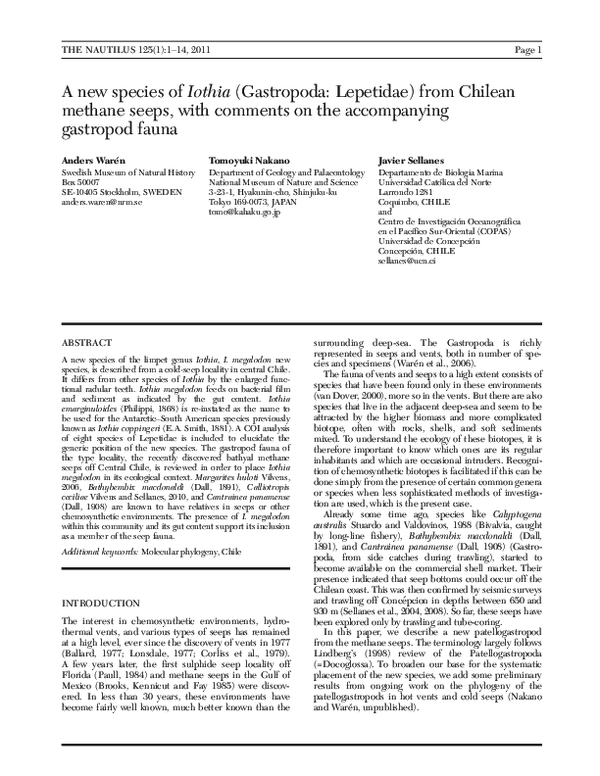 (PDF) A new species of Iothia (Gastropoda: Lepetidae) from Chilean ...