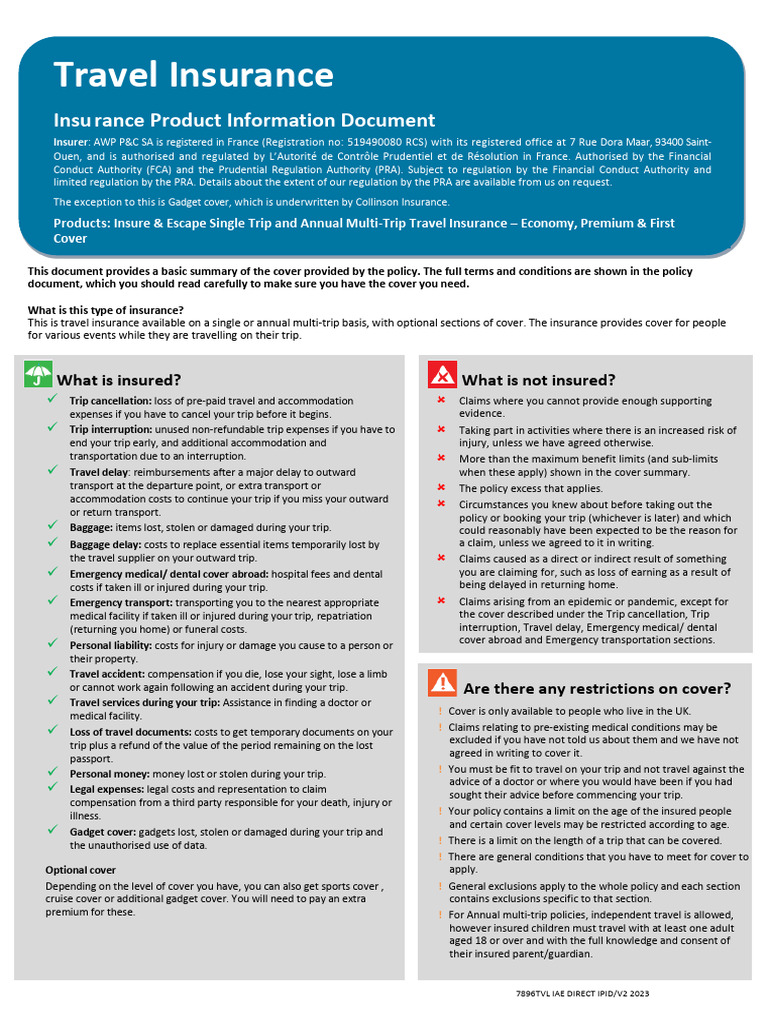 Travel Insurance: Insurance Product Information Document | PDF ...