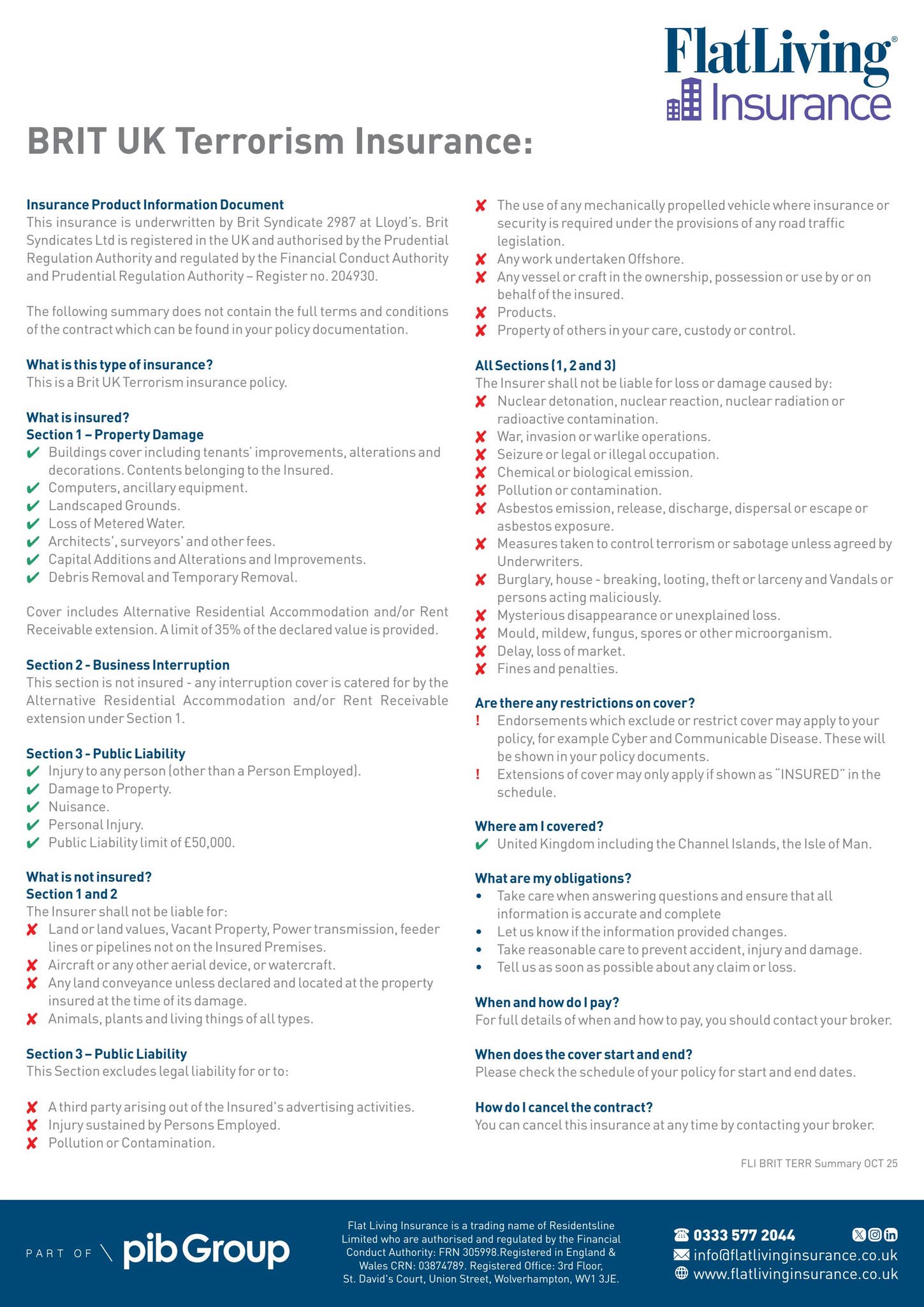 FLI Brit Terrorism Insurance Summary / IPID Sept 2023 by Residentsline ...