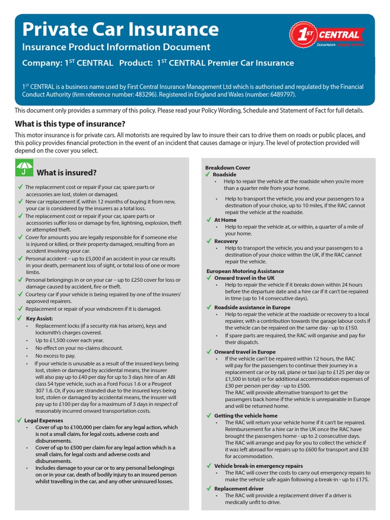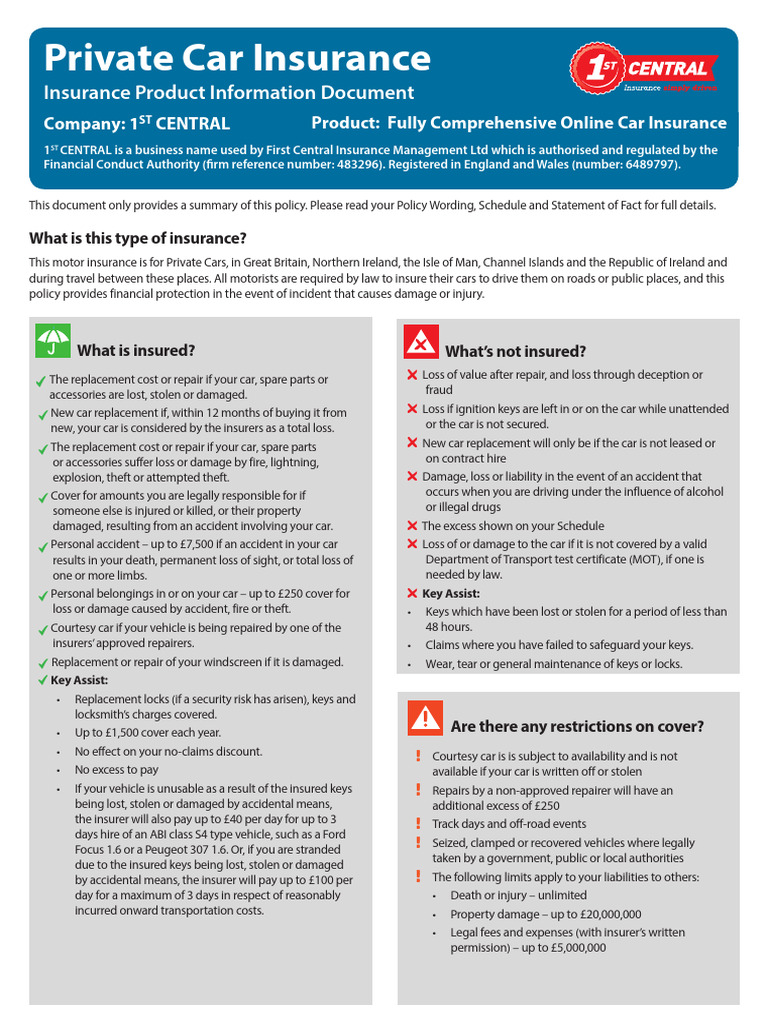 IPID Motor Cover - 1st CENTRAL Online v1.2 | PDF | Vehicle Insurance ...
