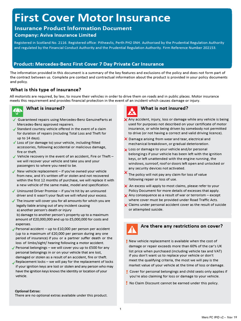 FIRST COVER AVIVA MERC IPID Phase 1 v2 | PDF | Vehicle Insurance ...