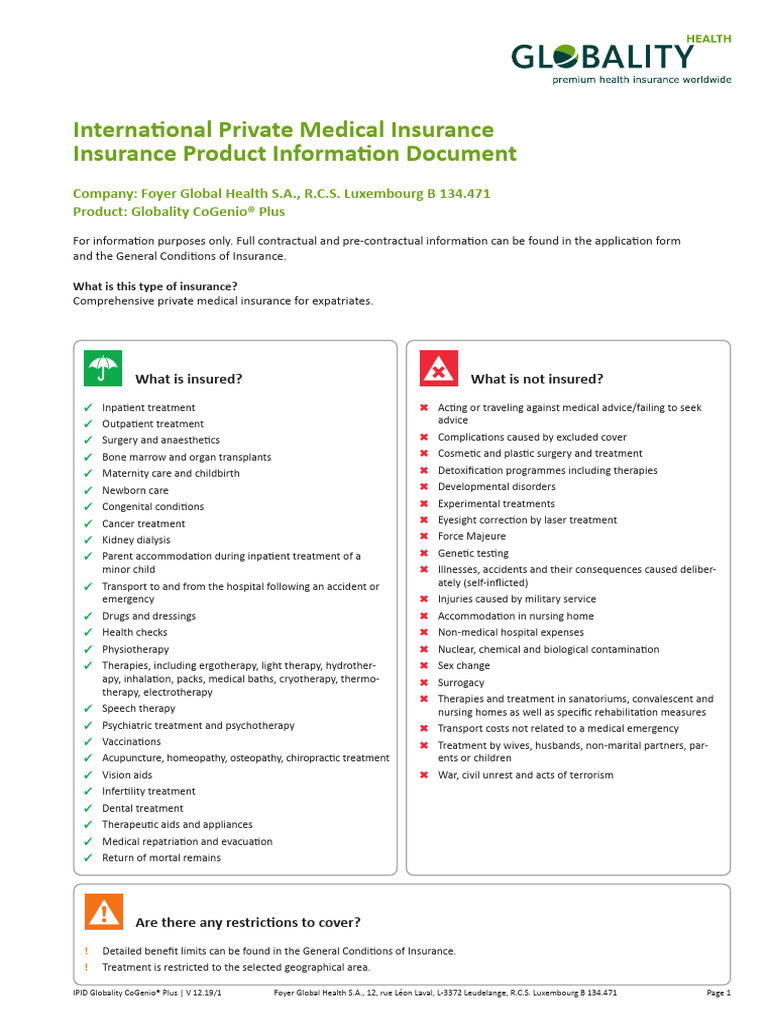 Insurance Product Information Document (IPID) | PDF | Patient | Hospital
