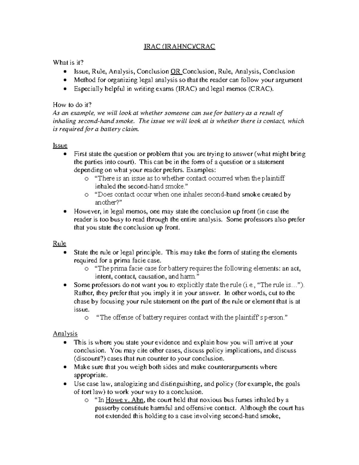 IRAC handout - how to solve a case - IRAC (IRAHNC)/CRAC What is it ...