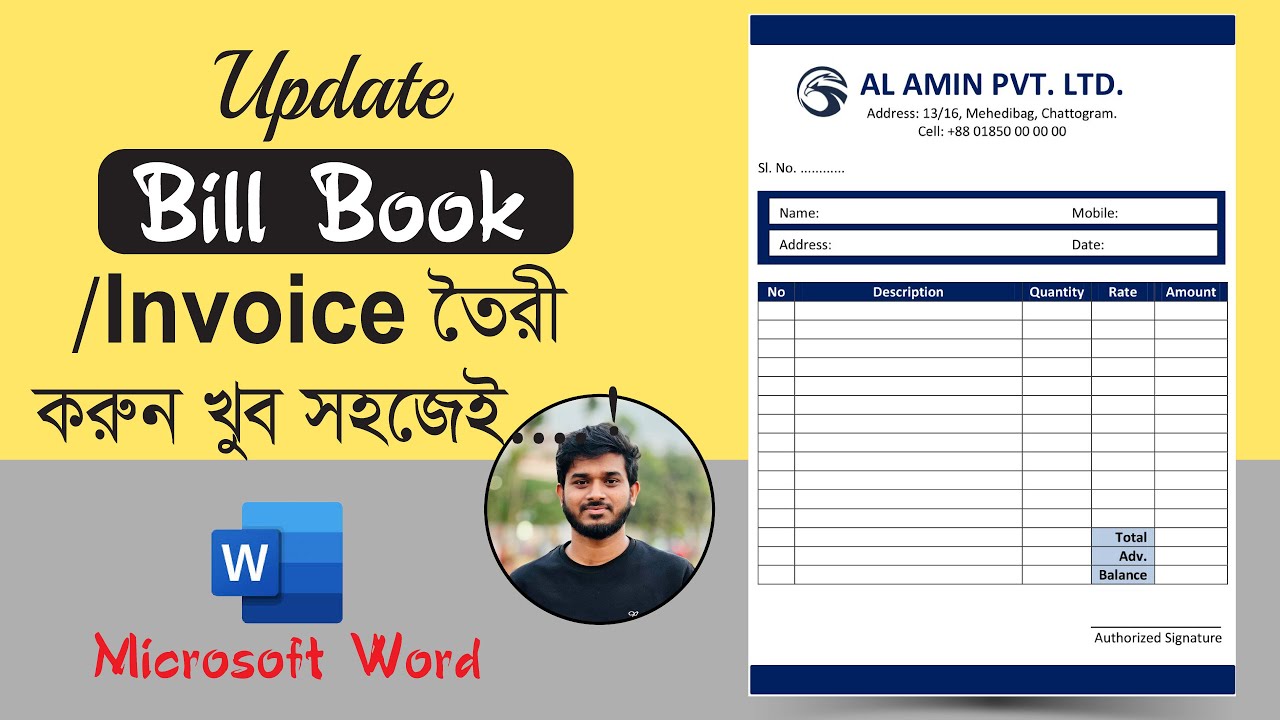 How to make Bill Book || Cash Memo || Bill Invoice in MS Word | Update ...
