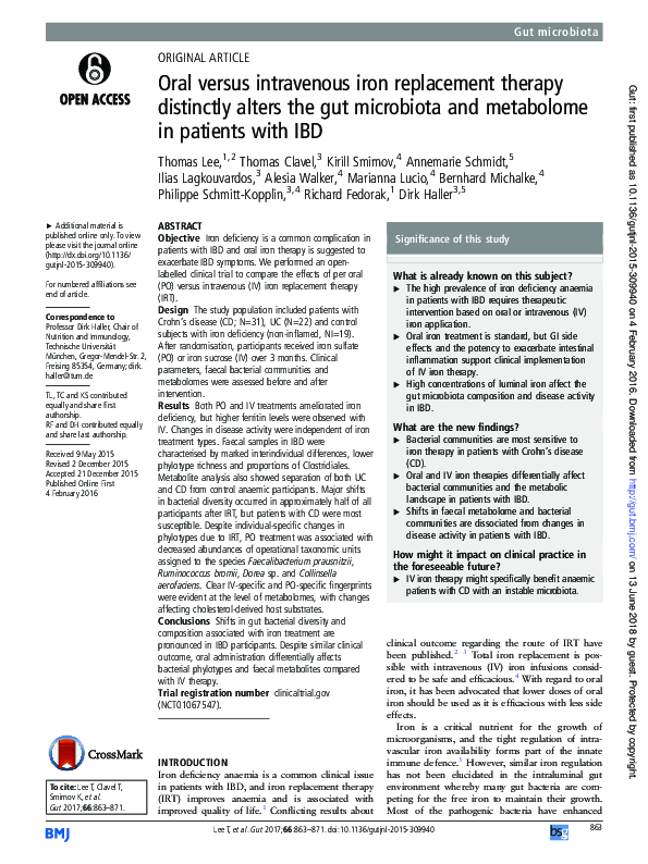(PDF) Oral vs Intravenous Iron Therapy Effects on IBD Microbiota