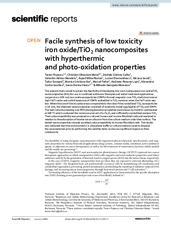 (PDF) Facile synthesis of low toxicity iron oxide/TiO2 nanocomposites ...