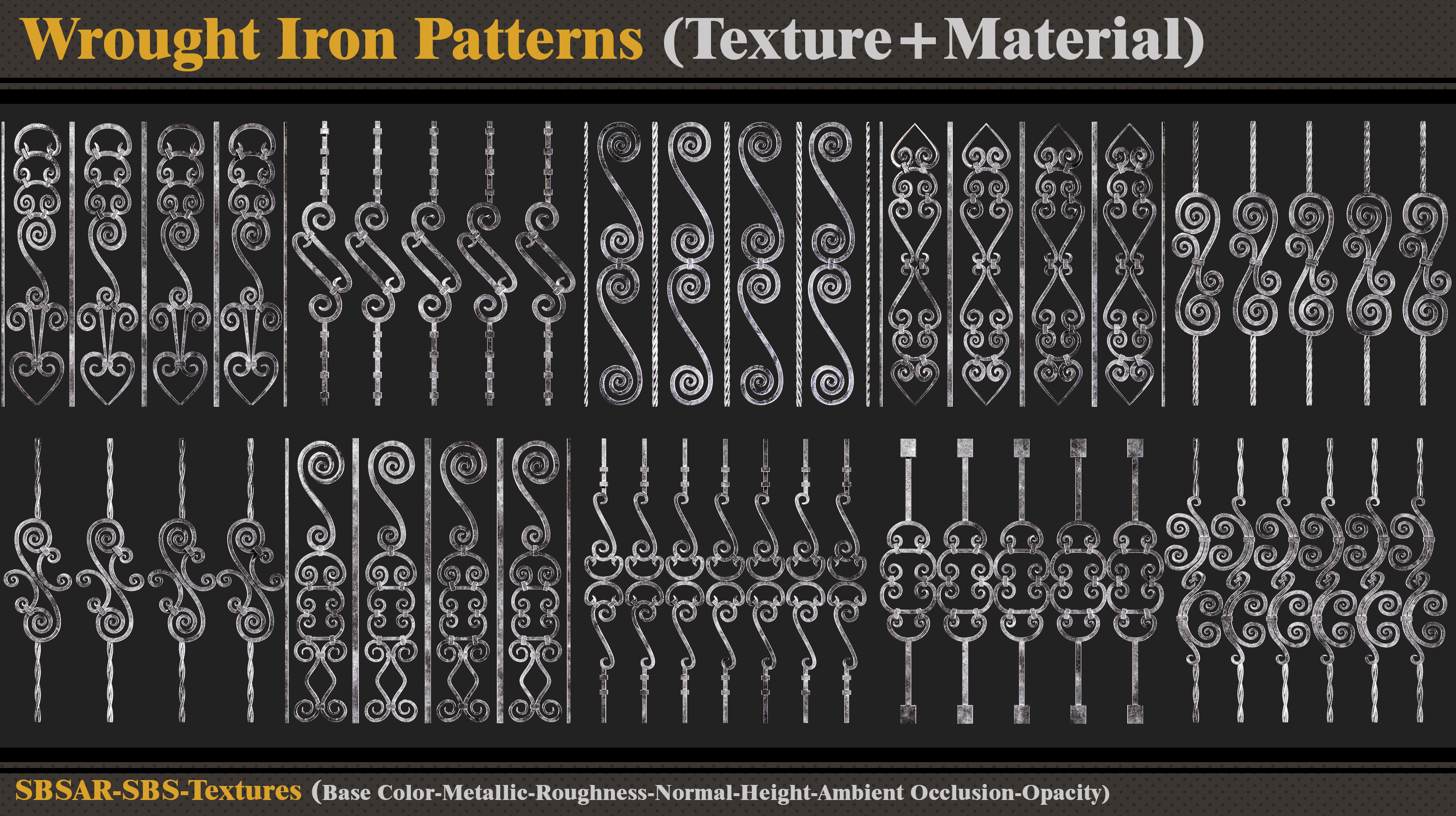 ArtStation - Wrought Iron Patterns (Textures + Materials) | Game Assets