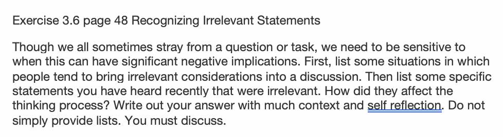 Solved Exercise 3.6 page 48 Recognizing Irrelevant | Chegg.com