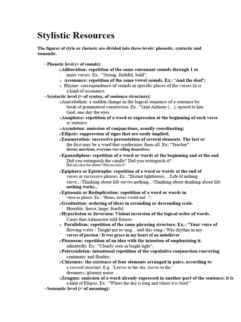 Exploring Syntactical Stylistic Devices: A Breakdown and Examples | PDF ...