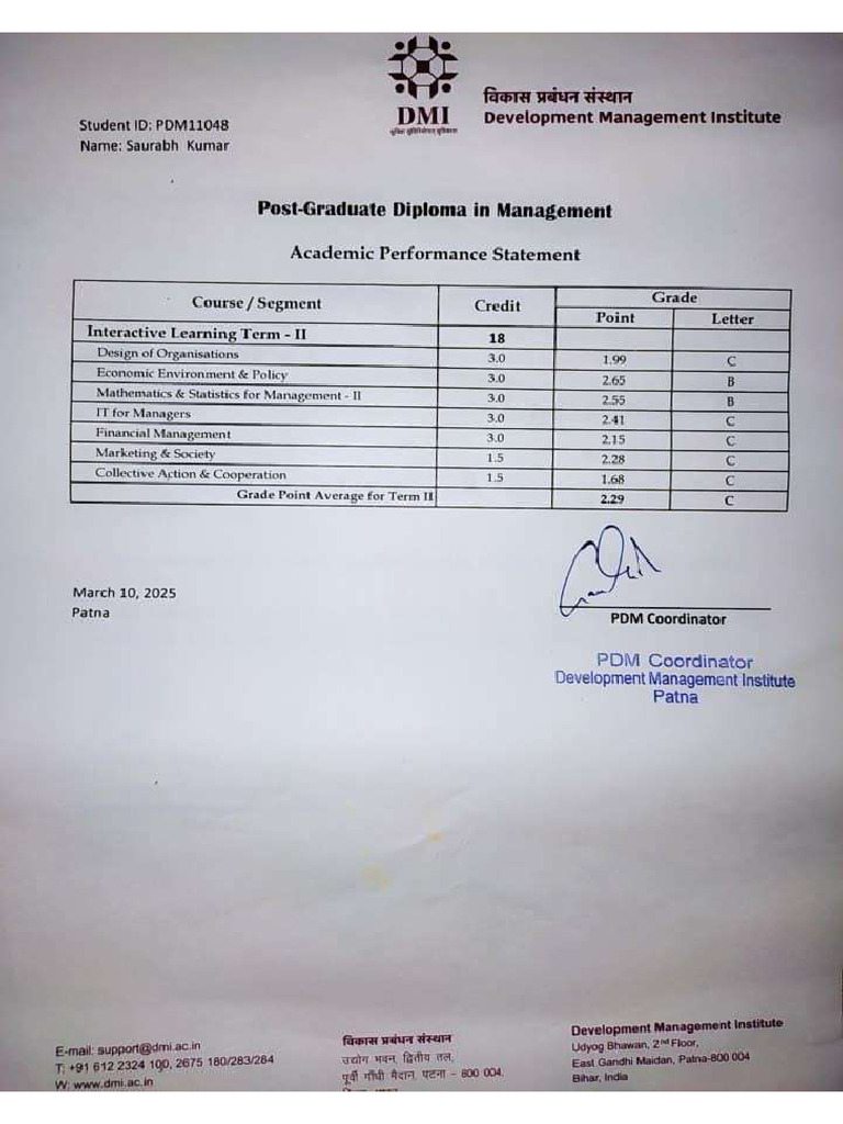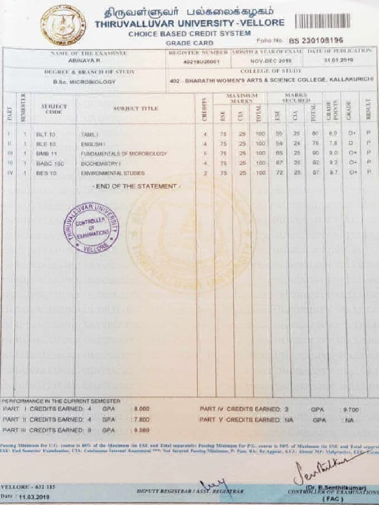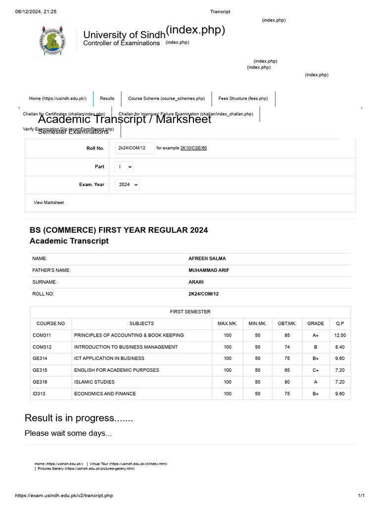 Transcript (Marks Card) | PDF