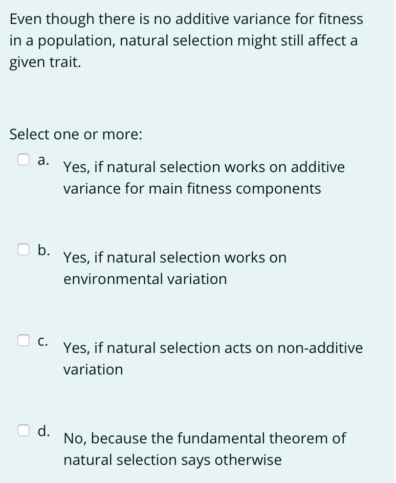 Solved Even though there is no additive variance for fitness | Chegg.com