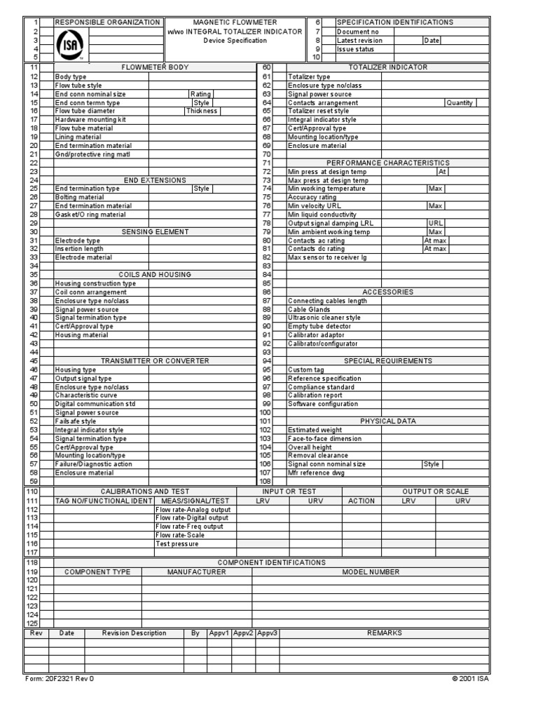 ISA Instrument Specification Forms and Index 5.1 Enabled