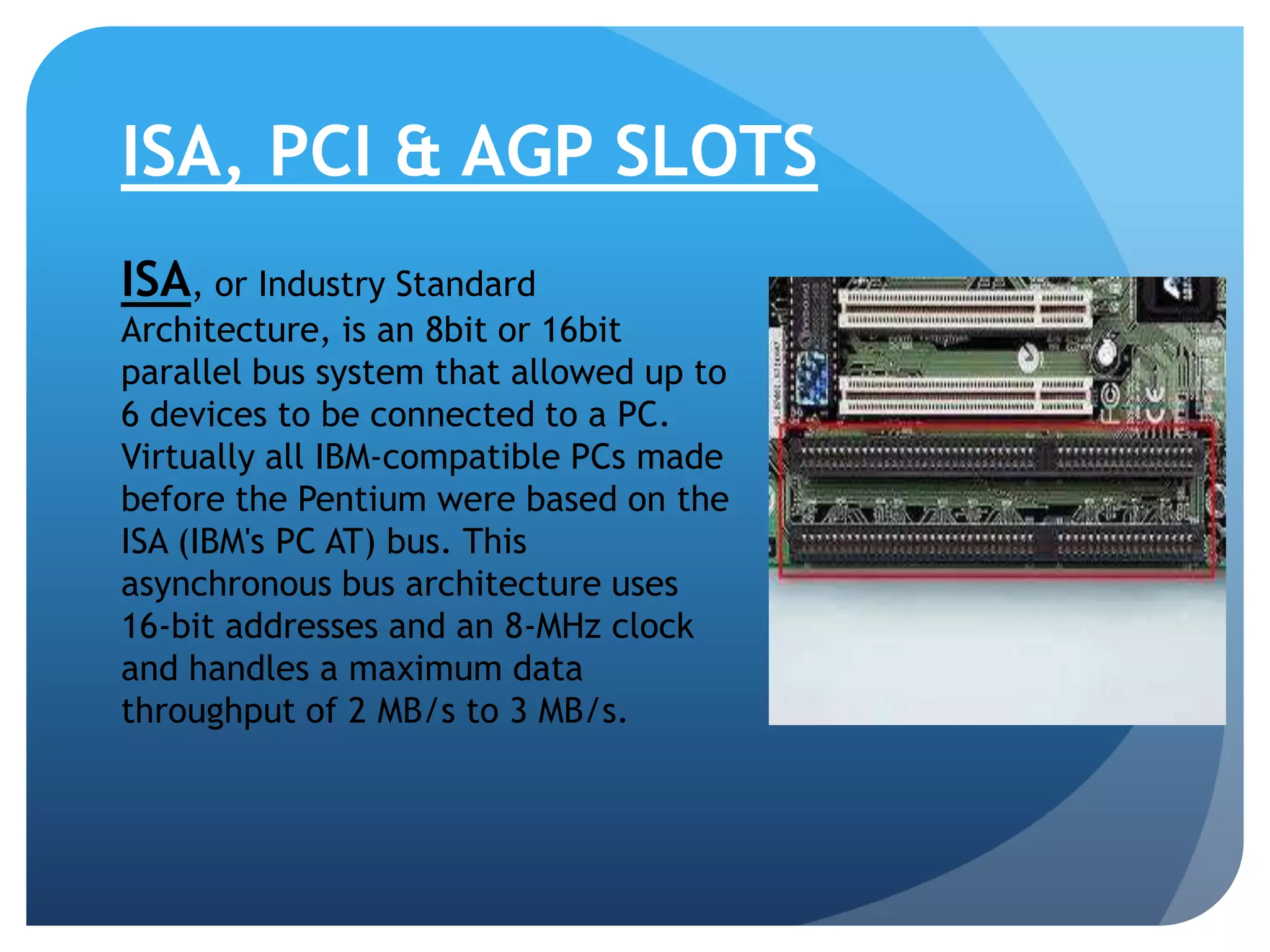 ISA (Industry Standard Architecture) Bus - ISA bus connects only to a ...