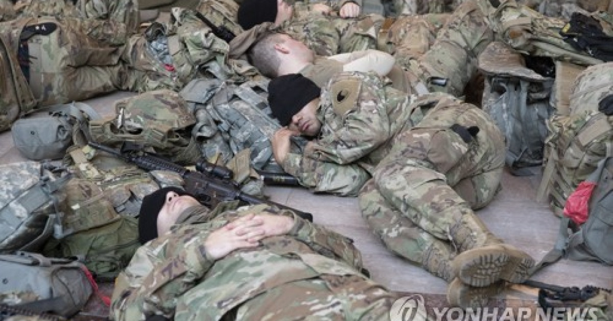 National Guard soldiers carrying riot shields march near the U.S ...