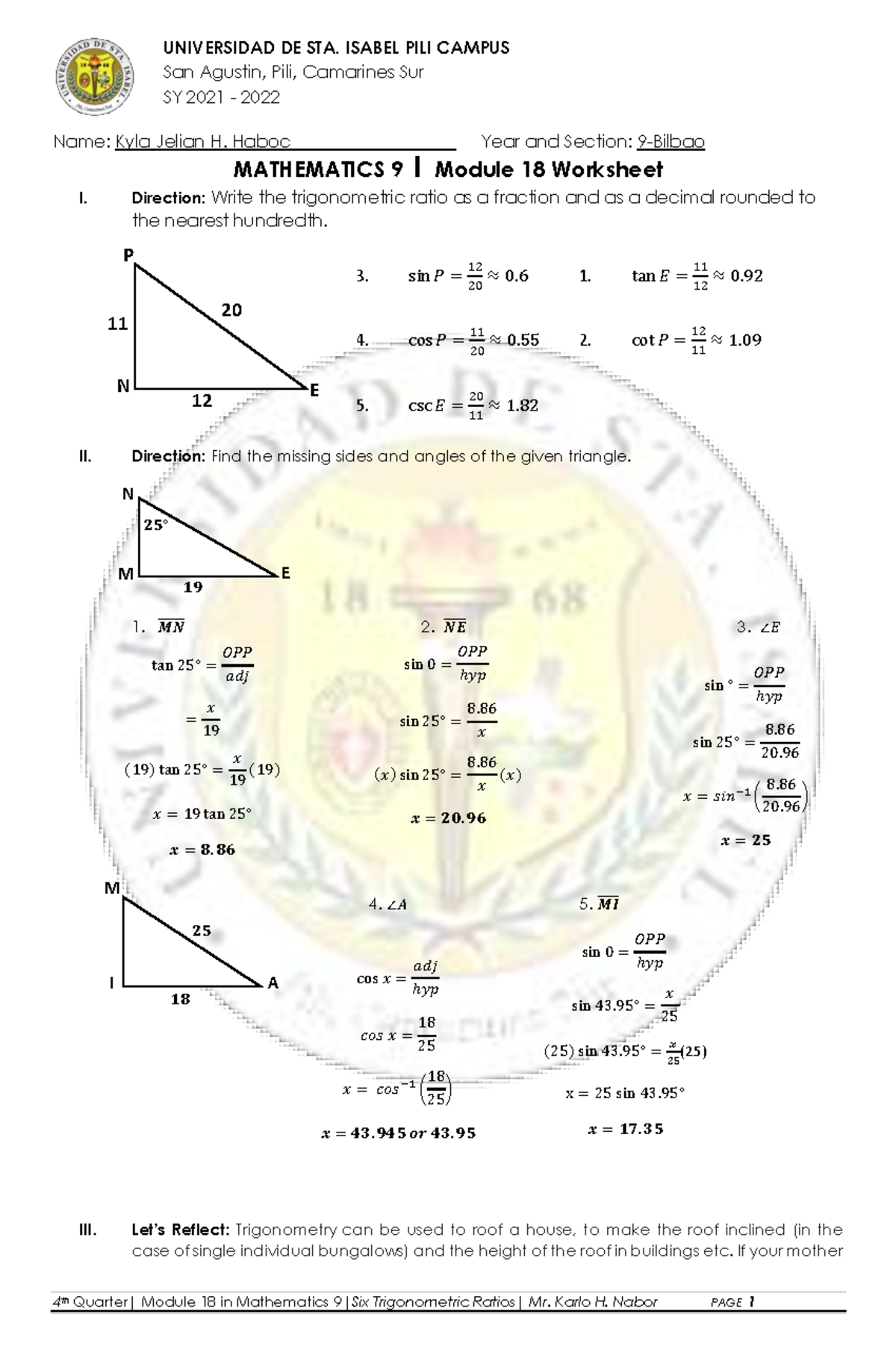 Module 18 Worksheet - UNIVERSIDAD DE STA. ISABEL PILI CAMPUS San ...