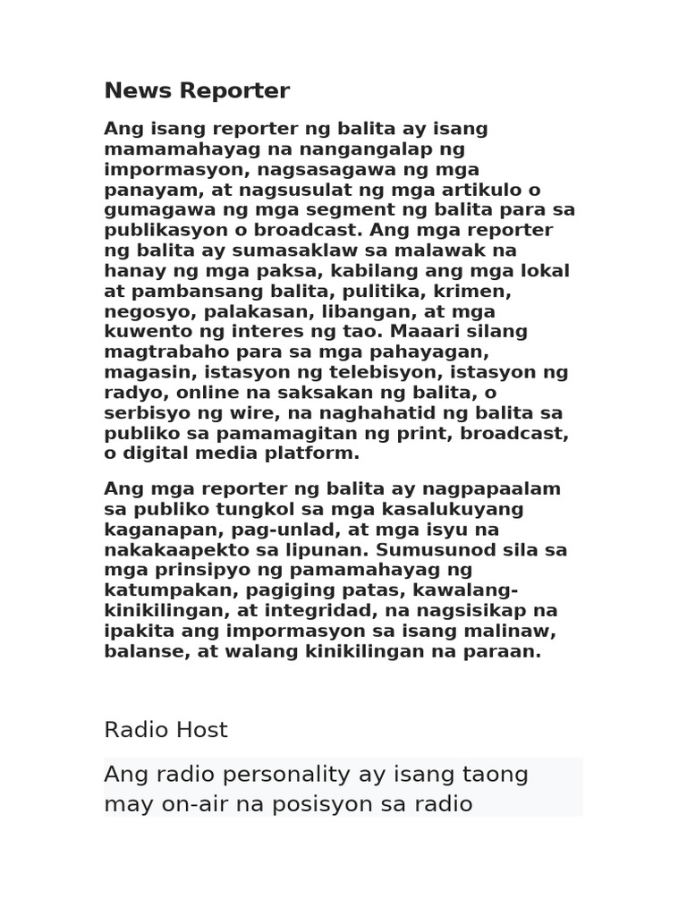 Ang Trabaho NG Isang Reporter o Writer NG Balita Ay Kumalap NG ...