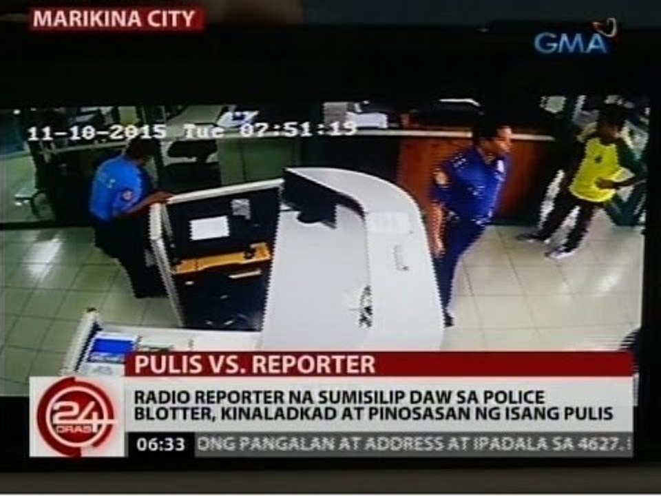 24 Oras: Radio reporter na sumisilip daw sa police blotter, kinaladkad ...