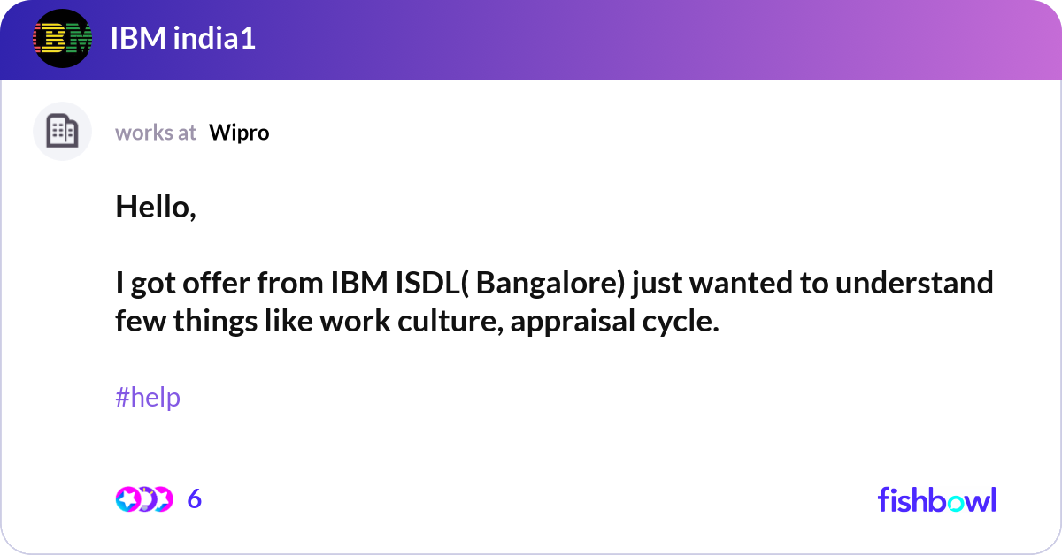 Hello, I got offer from IBM ISDL( Bangalore) just... | Fishbowl
