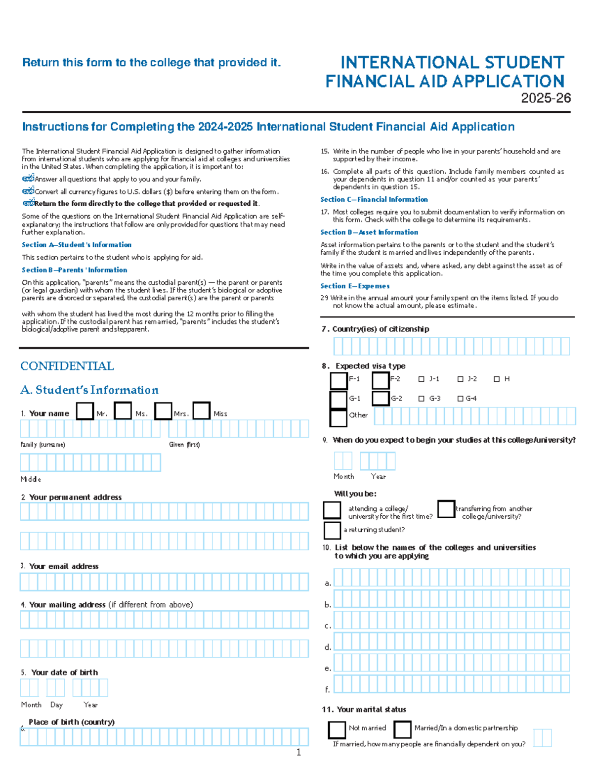 International Student Financial Aid Form 2025-26 | PDF | Student ...