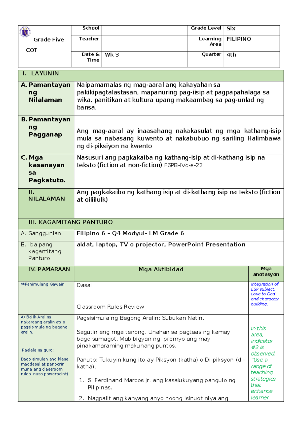Filipino 6 Quarter 4 Week 4 - Pagkakaiba ng Kathang-isip at Di-kathang ...