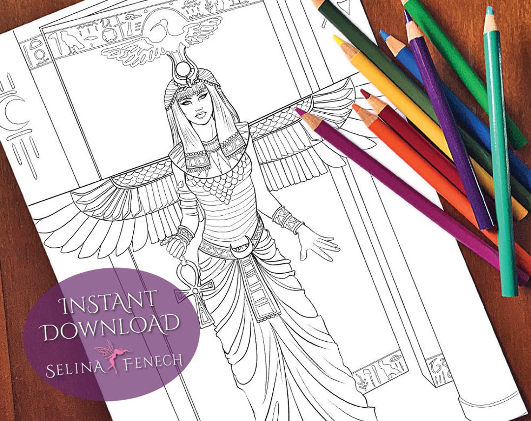 Egyptian Goddess Isis Printable Coloring Page for Adults - Etsy