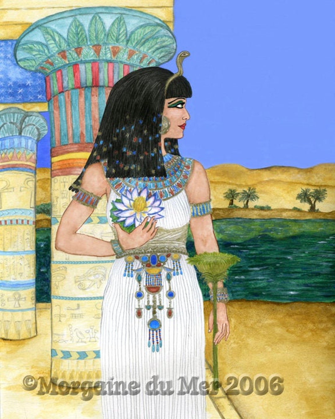 Egyptian Goddess Isis Print Supreme Mother Fertility Deity W Blue Lotus ...
