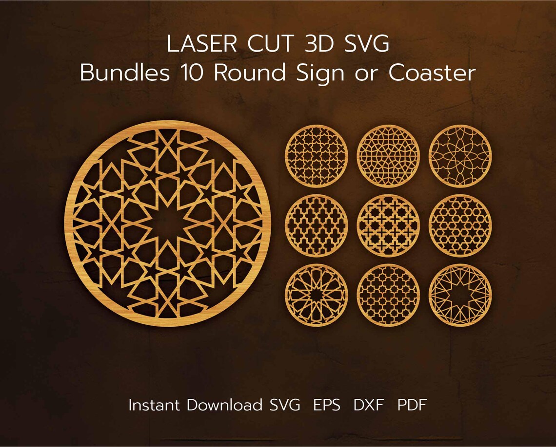 Bundles 10 Round Sign and Coaster, Islamic Pattern Muslim Home Decor ...