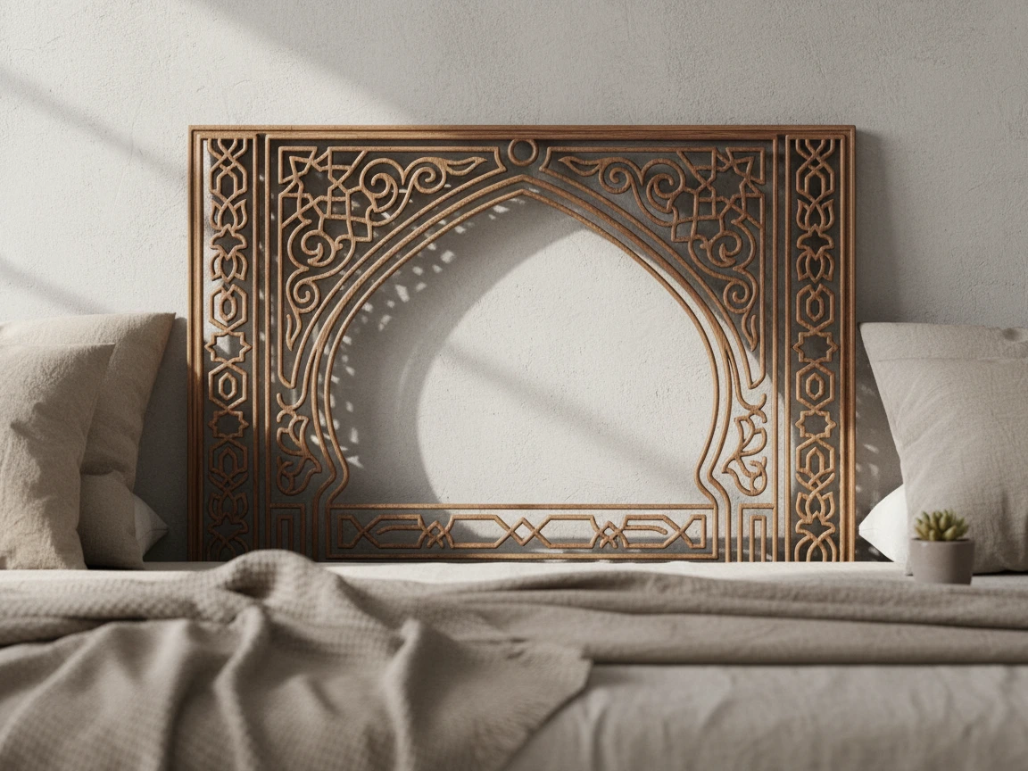 Intricate Wooden Arch Headboard with Geometric Islamic Patterns | Free ...