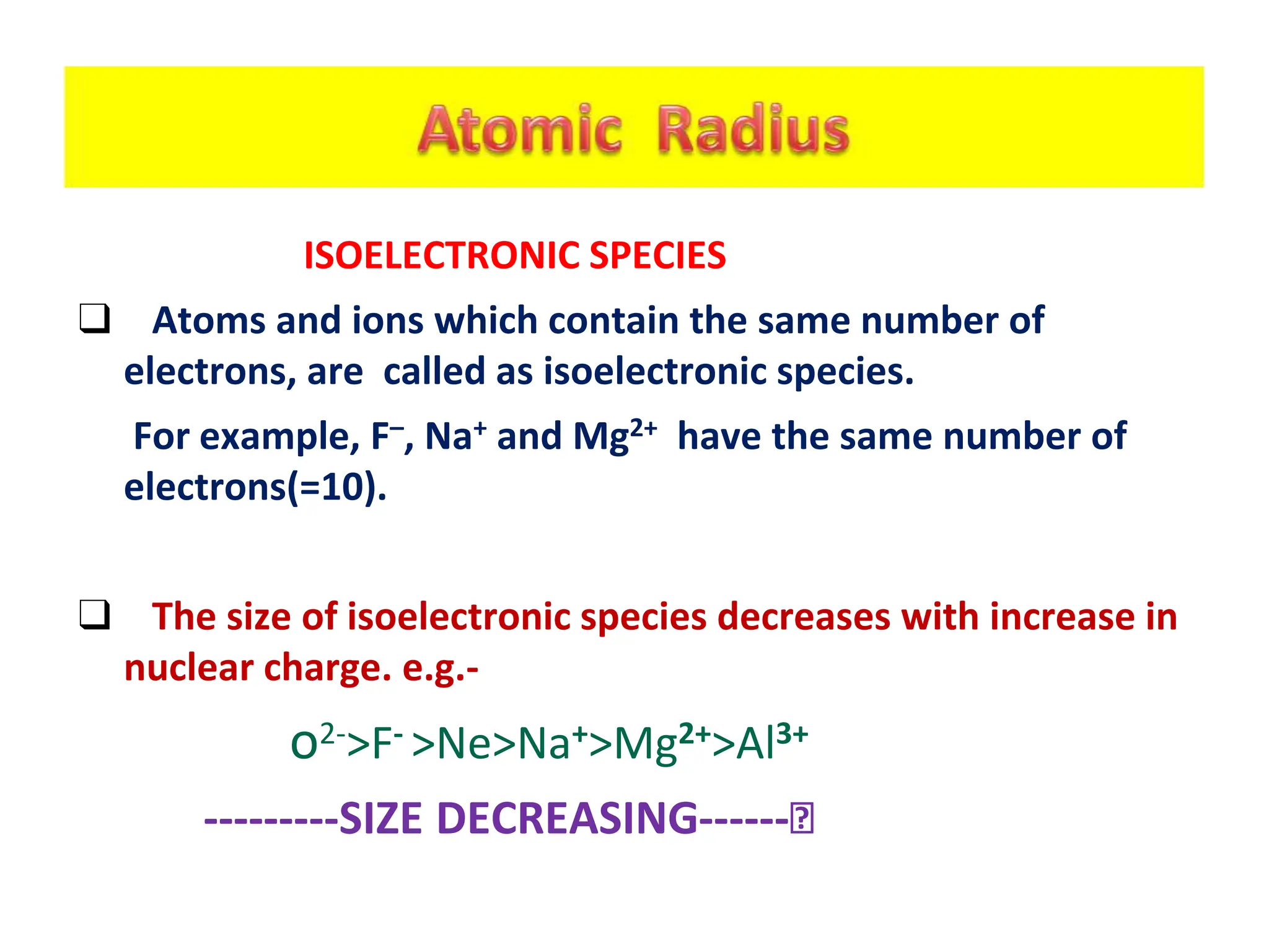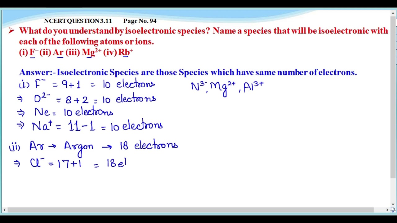 Chemistry Class 11 chapter 3 Isoelectronic Species and Ionic Radii by ...