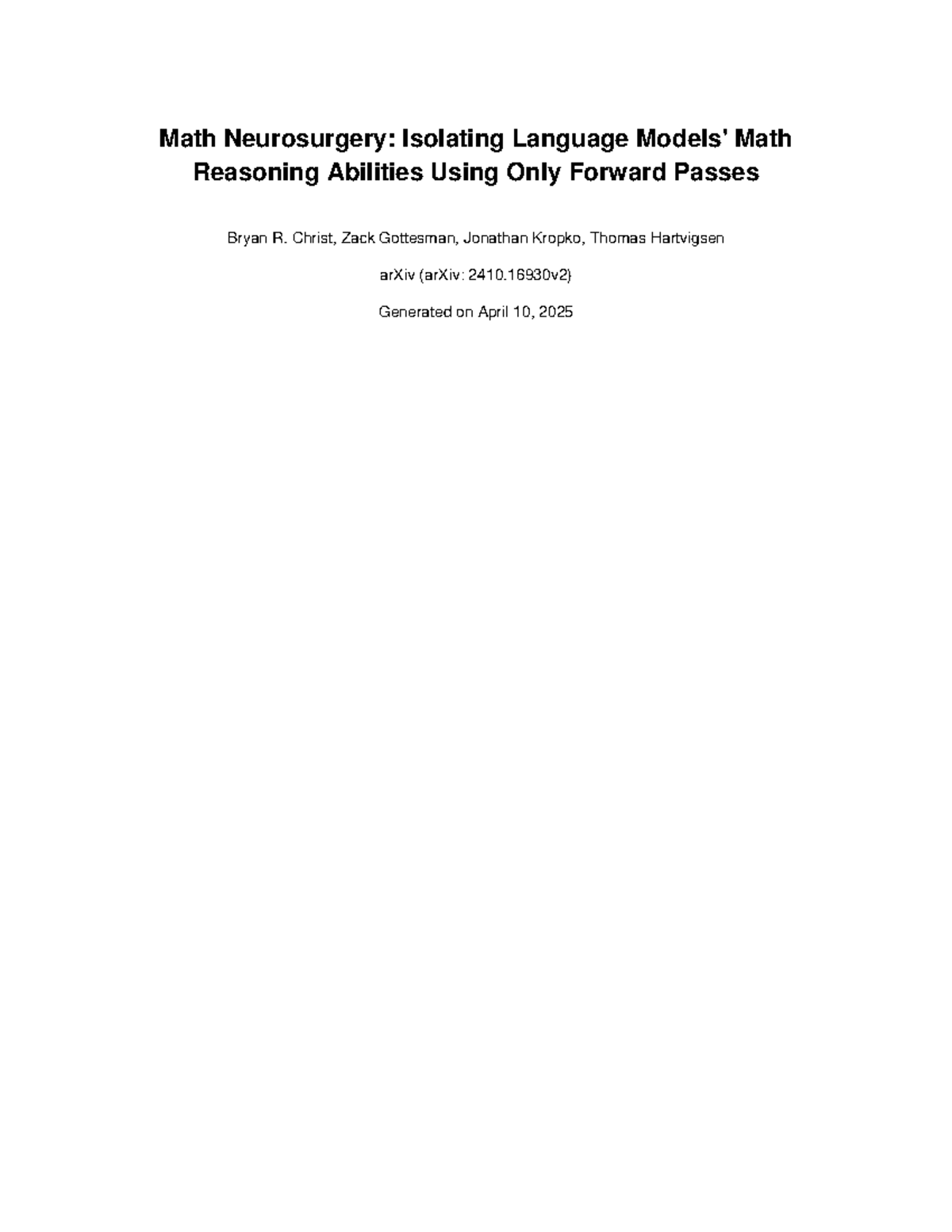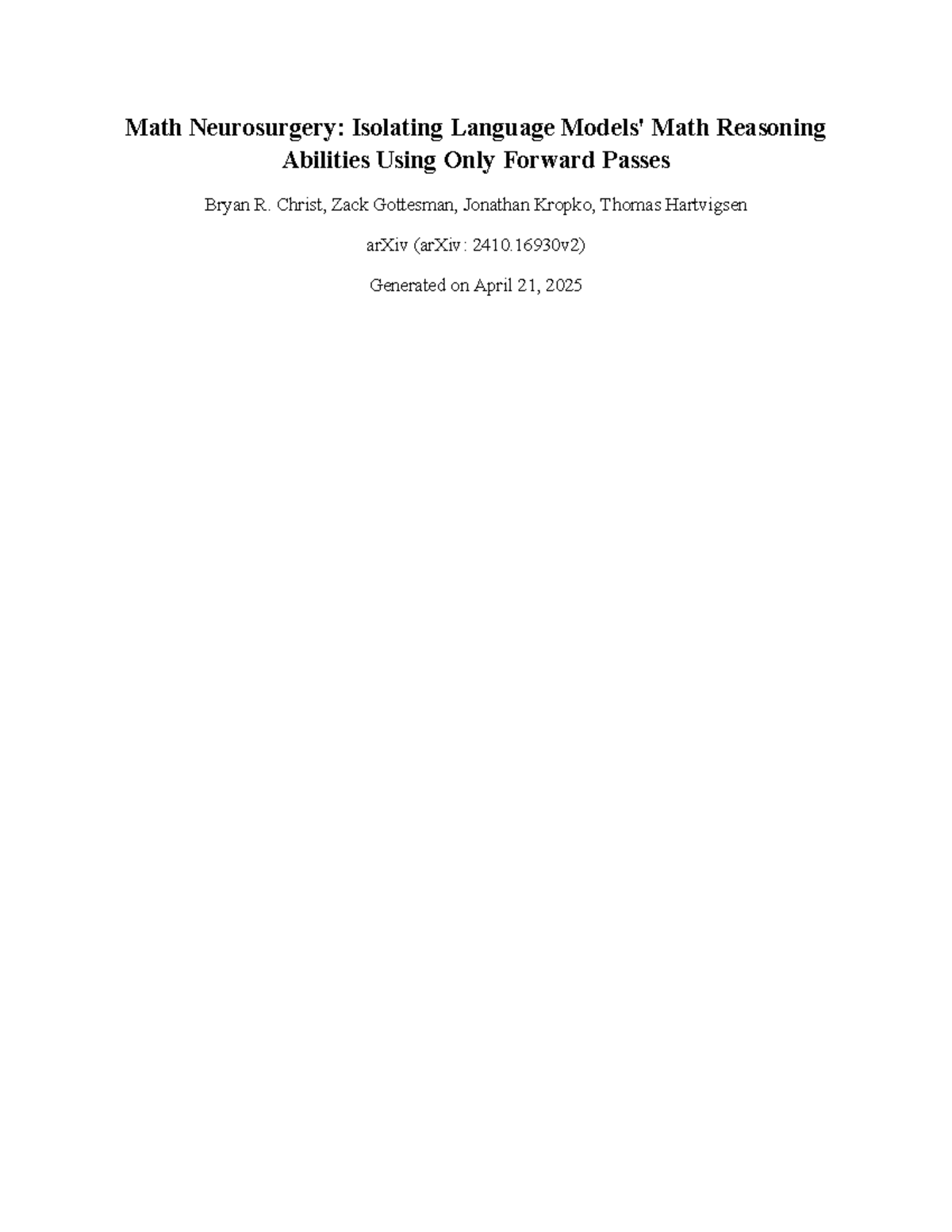 Math Neurosurgery Isolating Language Models Math - Math Neurosurgery ...