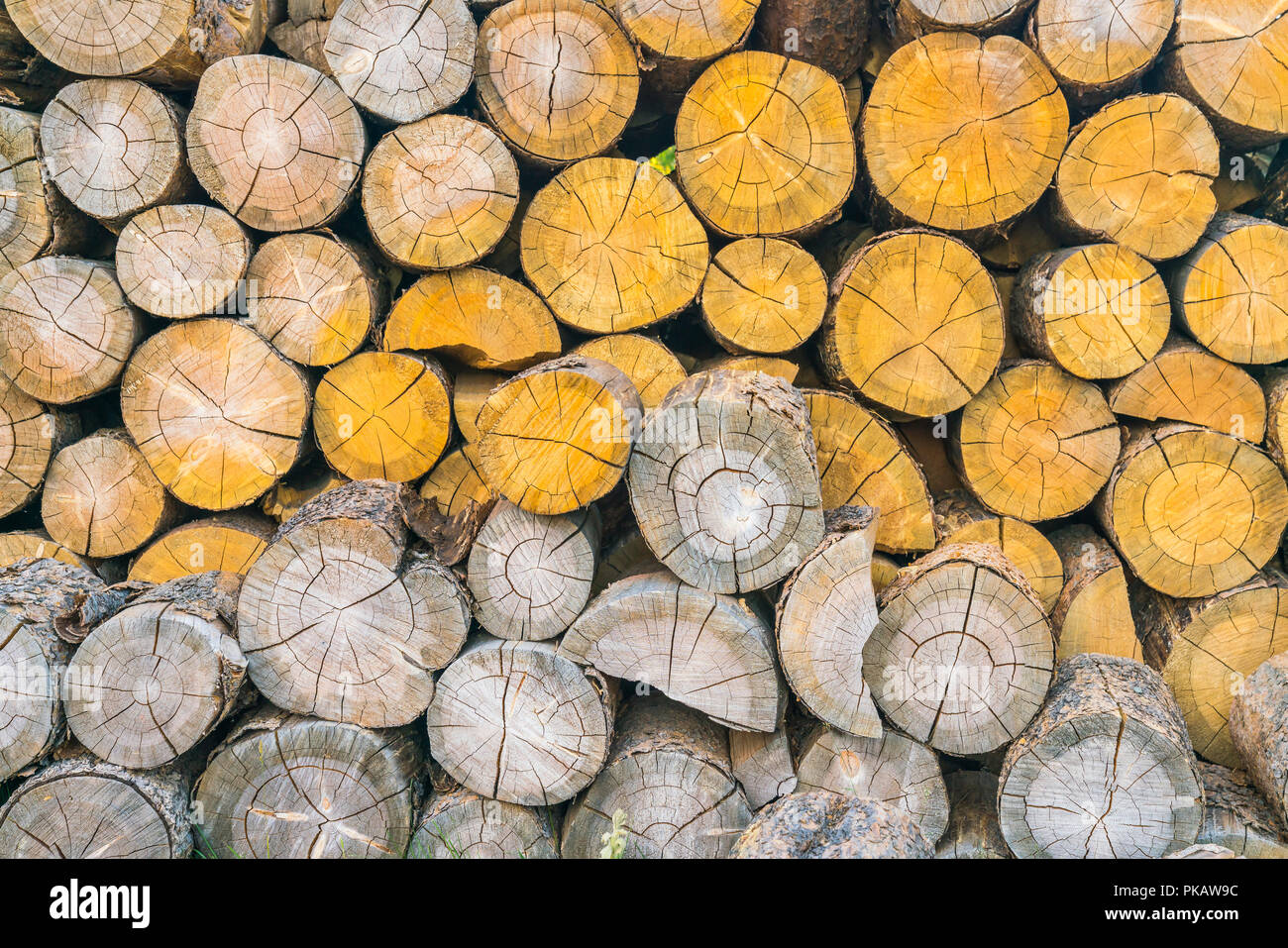 Cut-off log stack laid side by side Stock Photo - Alamy