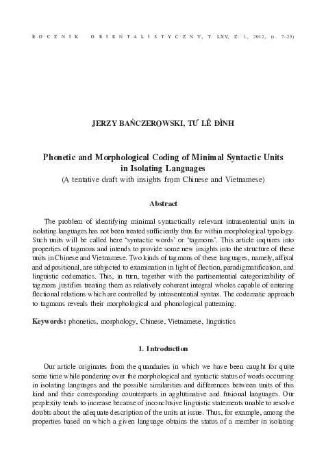 (PDF) Phonetic and Morphological Coding of Minimal Syntactic Units in ...