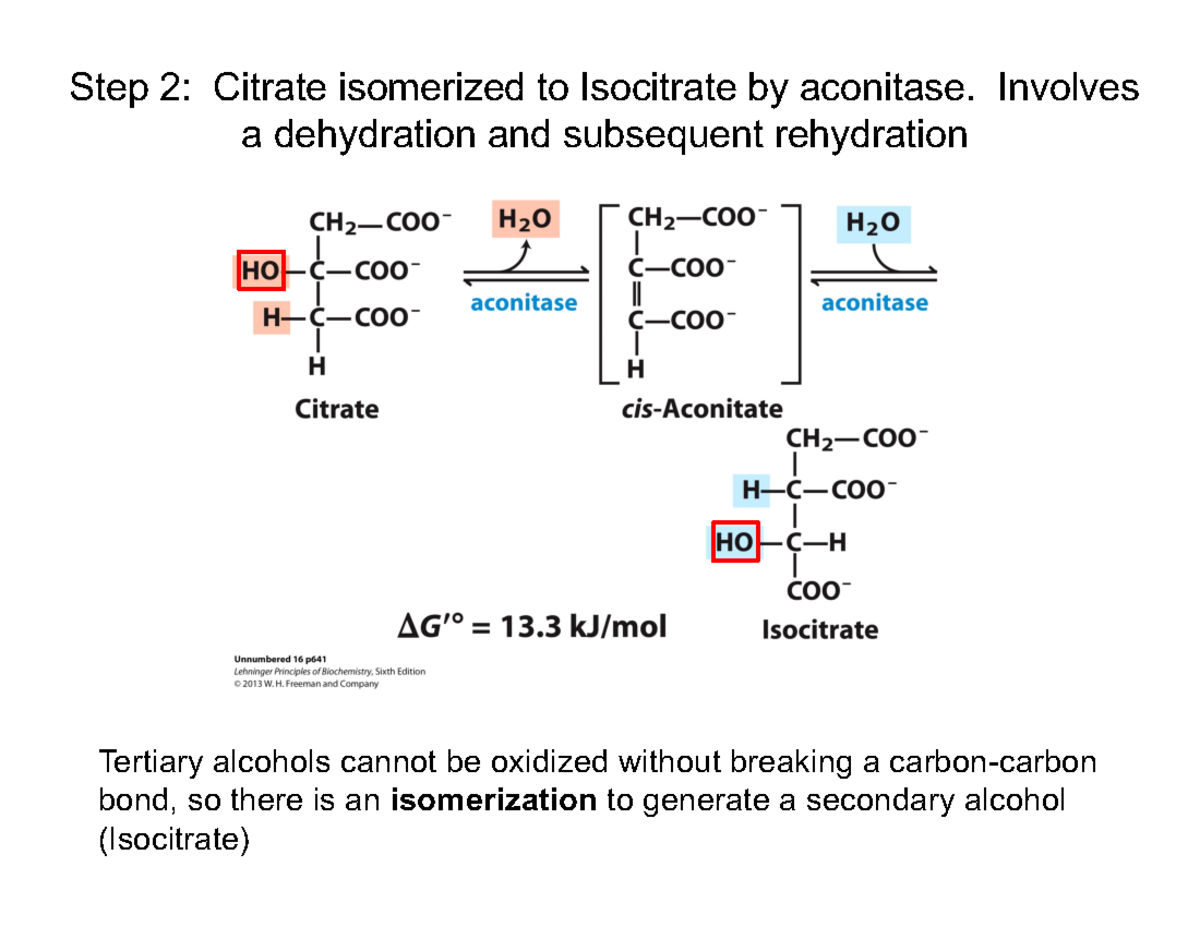 Lecture 12 - Oxidative Phosphorylation - Step 2: Citrate isomerized to ...